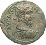 laureate, draped and cuirassed bust of Septimius Severus, right, seen from rear