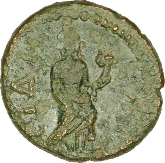 Tyche advancing right, holding cornucopia, left foot on prow