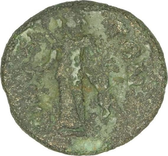 Athena standing left, head, right, holding patera and transverse spear