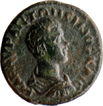 bare-headed, draped and cuirassed bust of Caracalla, right, seen from rear