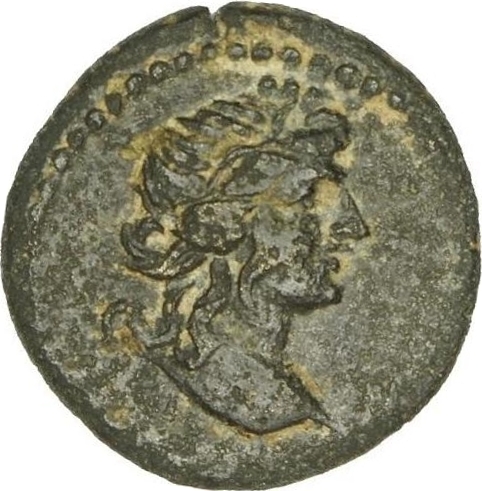 Head of Dionysus, right, crowned with ivy