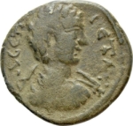 bare-headed, draped and cuirassed bust of Geta, right, seen from rear