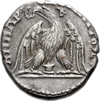 eagle standing facing, head and tail left, with wings spread, holding wreath in beak; small altar between the eagle's legs; K in upper right field