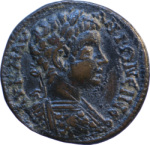 laureate and cuirassed bust of Caracalla, right, seen from front, with gorgoneion on cuirass
