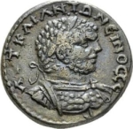 laureate and cuirassed bust of Caracalla, right, seen from front