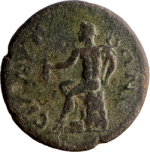 laureate, draped and cuirassed bust of Macrinus, right, seen from rear |