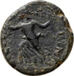 Artemis advancing left, head right, holding torch and bow
