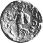 Athena advancing left, holding pomegranate and shield; at left, serpent
