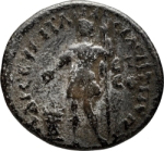 emperor in military dress standing facing, head left, holding patera in his right hand over lighted altar and spear in left |