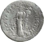 Tyche standing facing head left holding rudder in right and cornucopia in left |