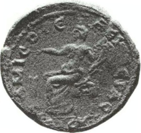 Tyche seated left holding rudder in right hand and cornucopia in left