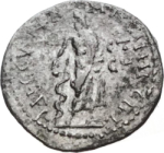 Asclepius standing facing, head left, his right hand resting on serpent-staff |