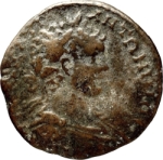 Tyche standing facing head left holding rudder in right and cornucopia in left; in field, right star |