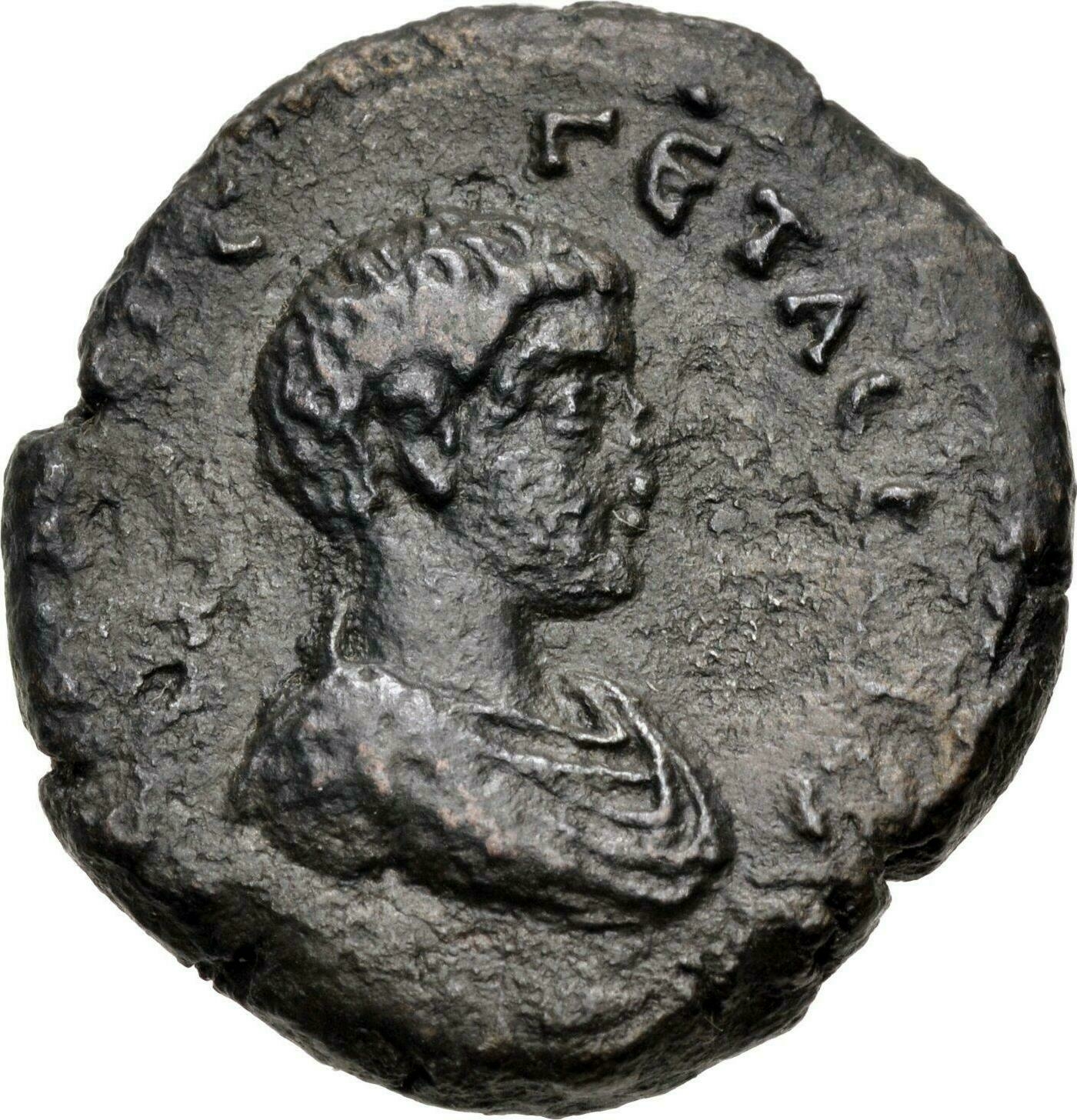 bare-headed, draped and cuirassed bust of Geta, right, seen from front