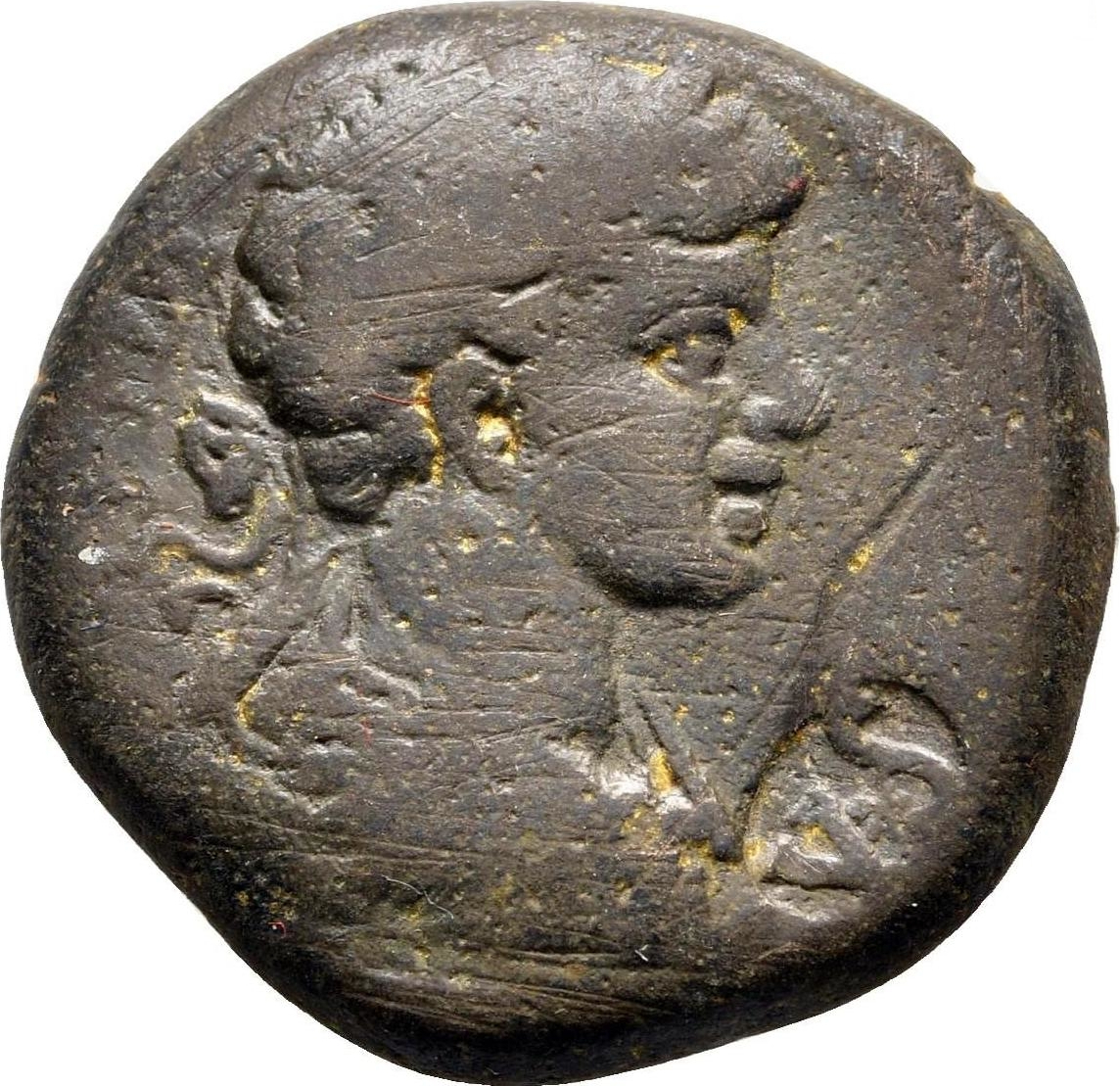 laureate, draped and cuirassed bust of young Caracalla, right, seen from rear