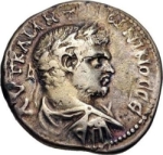 laureate, draped and cuirassed bust of Caracalla, right, seen from rear