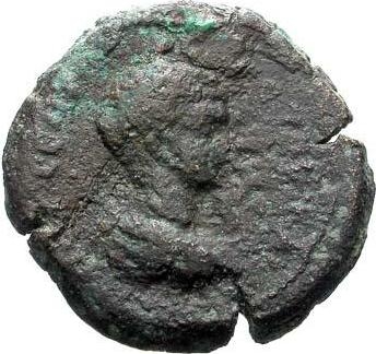 bare-headed, draped and cuirassed bust of Geta, right, seen from rear