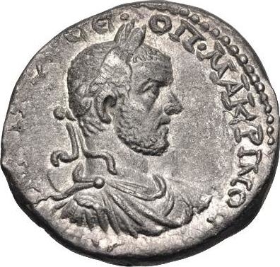 laureate, draped and cuirassed bust of Macrinus, right, seen from front
