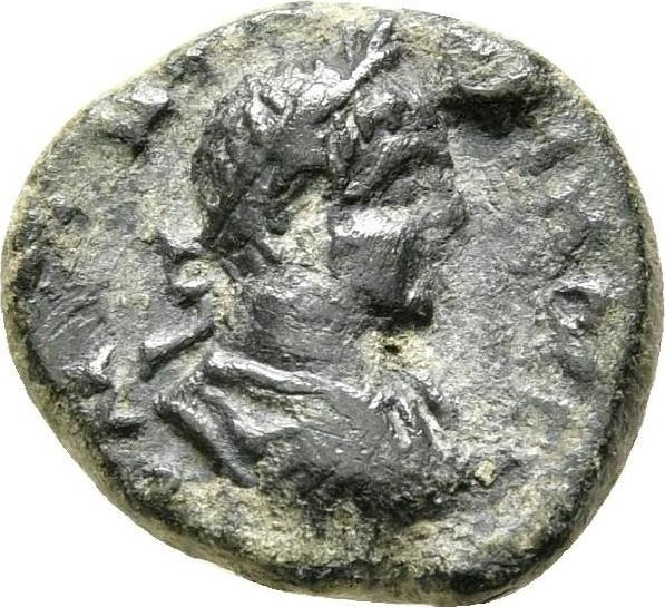 laureate, draped and cuirassed bust of Caracalla, right, seen from rear