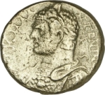 laureate and cuirassed bust of Caracalla, left, seen from front, with gorgoneion on cuirass and trabea over left shoulder