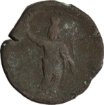 Sarapis standing facing, right hand raised, holding sceptre with left hand