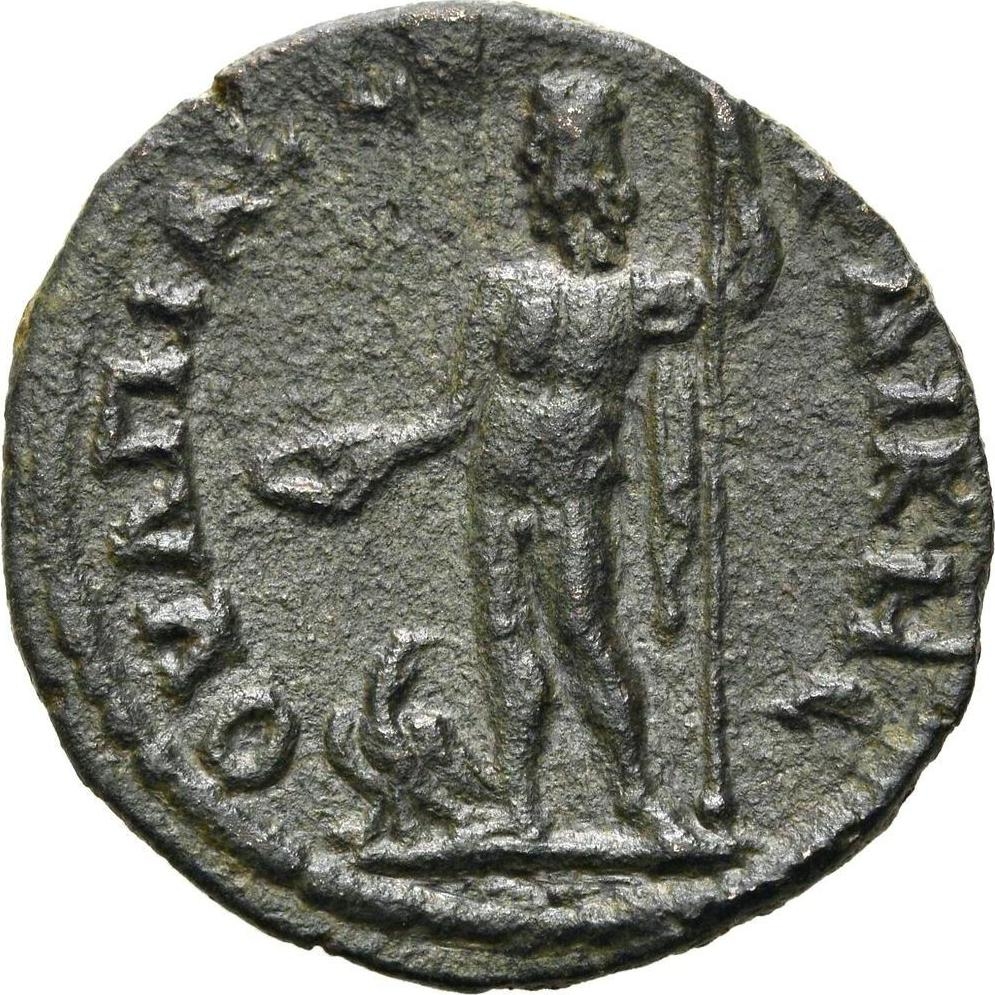 Zeus standing left, holding patera and sceptre; eagle at feet