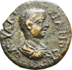 bare-headed, draped and cuirassed bust of Saloninus, right, seen from rear