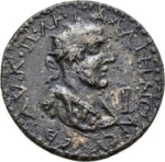 radiate, draped and cuirassed bust of Galienus, right, seen from rear |