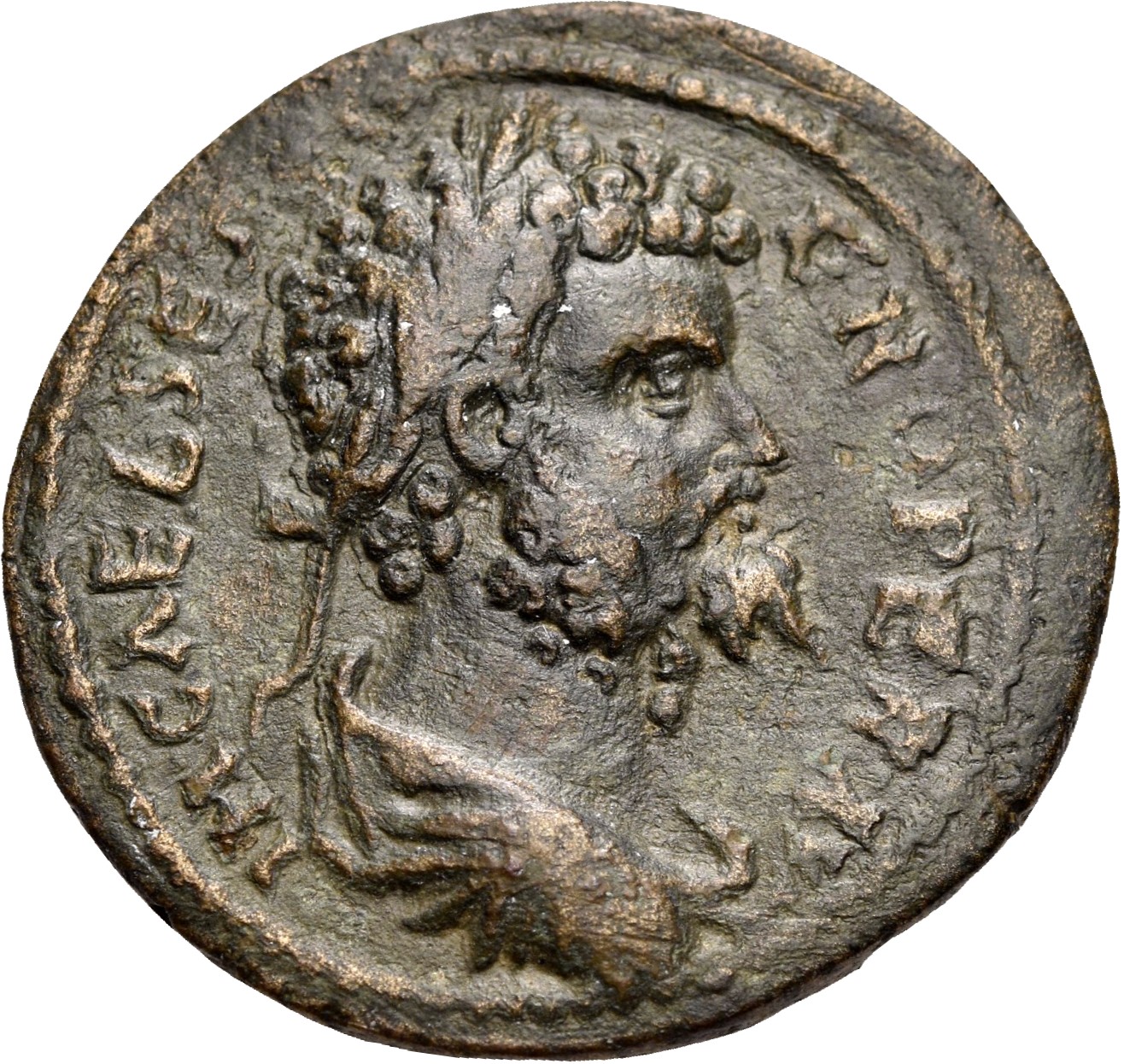 laureate, draped and cuirassed bust of Septimius Severus, right, seen from rear