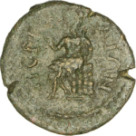 Pan seated left, holding pedum in left and syrinx to lips in right