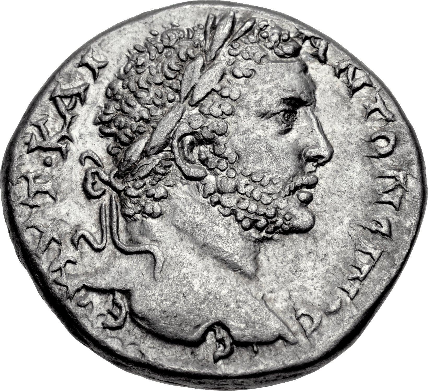 laureate head of Caracalla, right