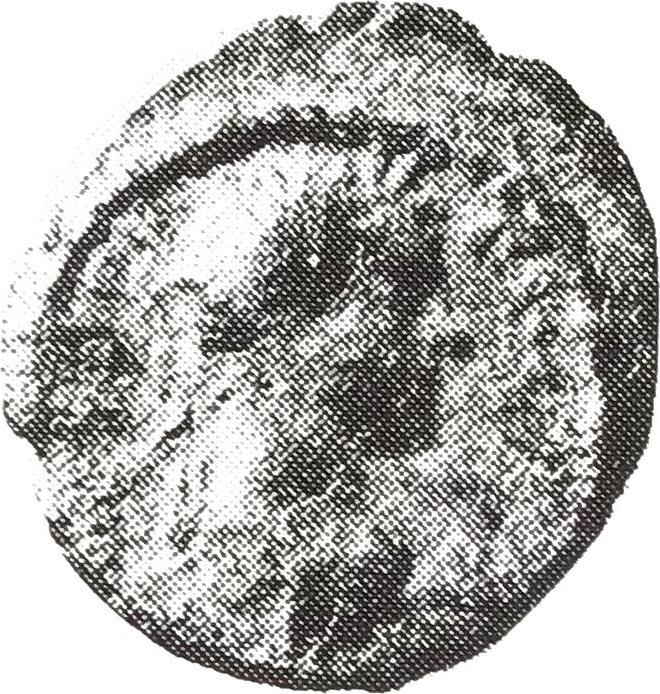 eagle standing facing, wings spread, head right, with wreath in beak (?)