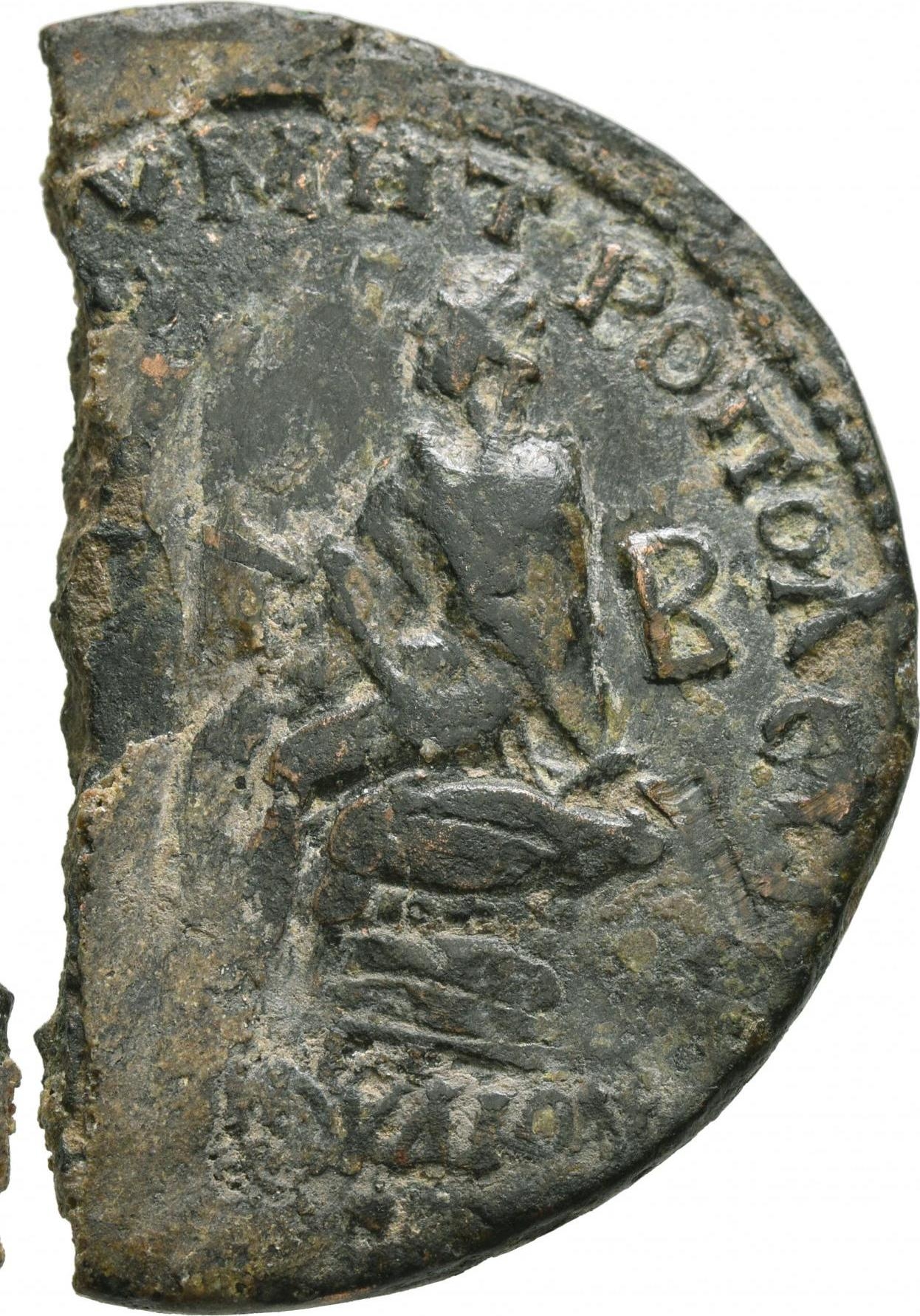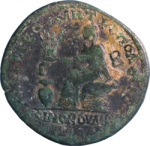 Koinoboulion seated left, on rocks, holding small statues of the three Eparchies; in front, vase |