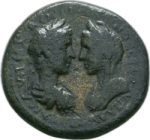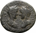 laureate, draped and cuirassed bust of Caracalla, right, seen from rear, facing veiled, diademed and draped bust of Plautilla, left |
