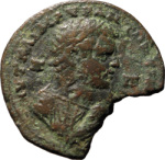 bust of Caracalla, right, wearing crown and garments of Demiourgos, seen from front