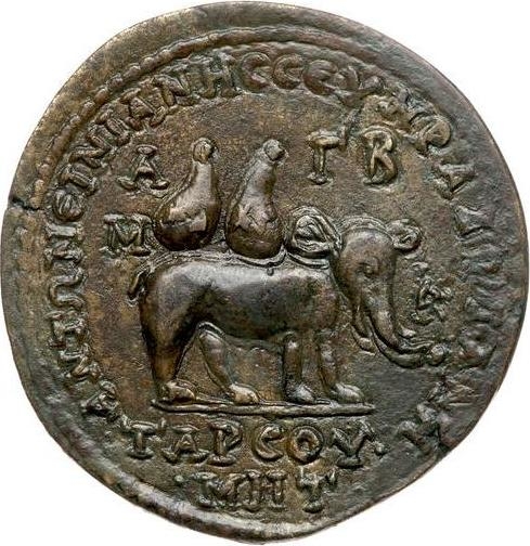 Ἀντωνεινιανῆς Σευηρ(ιανῆς) Ἁδριανῆ(ς) μητ(ροπόλεως) Ταρσοῦ μητ(ροπόλεως) αʹ μ(εγίστης) κ(αλλίστης) γʹ βʹ