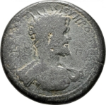radiate and cuirassed bust of Septimius Severus, right, seen from front, with gorgoneion on cuirass