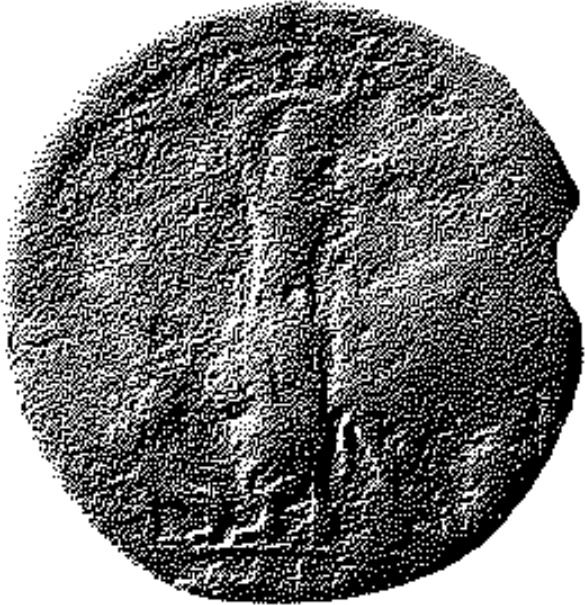 Dionysus standing facing, right right, hand raised over head, supported by satyr standing left, holding pedum; at feet, left, panther |