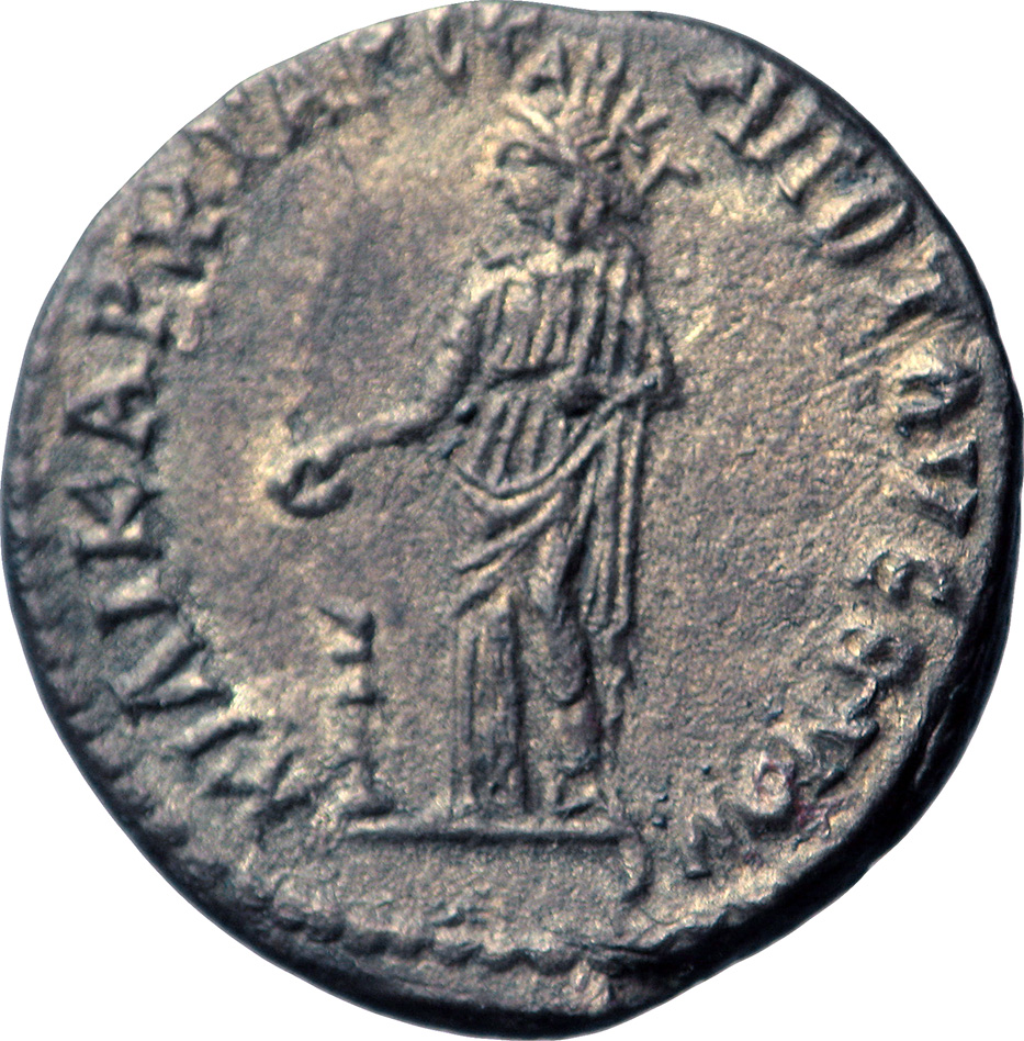 Cilicarchia, crowned, standing left, holding patera over candelabrum |