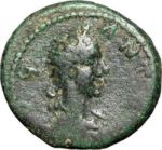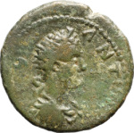 radiate, draped and cuirassed bust of Caracalla, right, seen from front