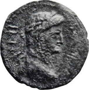 turreted, draped and cuirassed bust of Tyche with vexillum, right