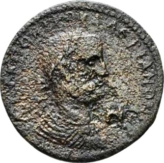 laureate draped and cuirassed bust of Valerian, right, seen from rear