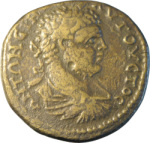 laureate, draped and cuirassed bust of Caracalla, right, seen from rear
