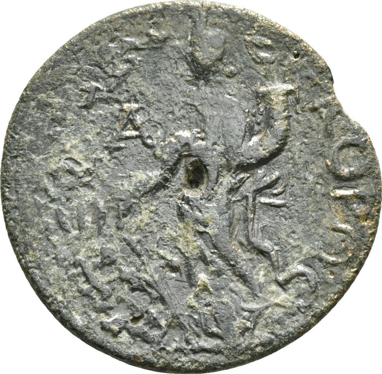 Tyche standing left, holding rudder and cornucopia