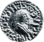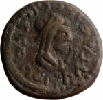 draped and diademed bust of Rhescuporis V, right; before, trident