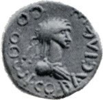 laureate and draped bust of Roman emperor, right; to right, tamgha