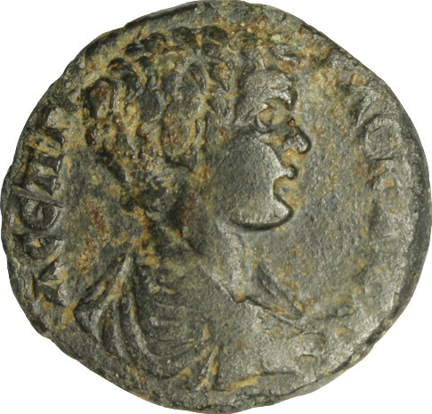 bare-headed, draped and cuirassed bust of Geta, right, seen from rear