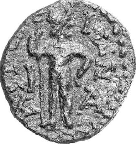 Zeus standing left, nude, head right, left hand on hip, holding sceptre in right