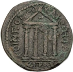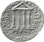 temple with four columns; pellet in pediment