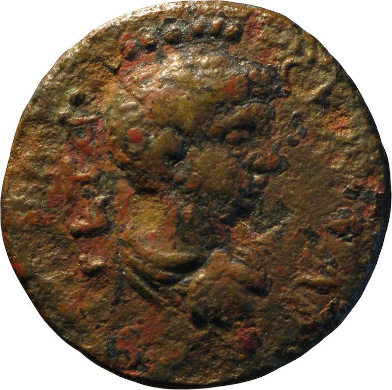 bare-headed, draped and cuirassed bust of Geta ?, right, seen from rear